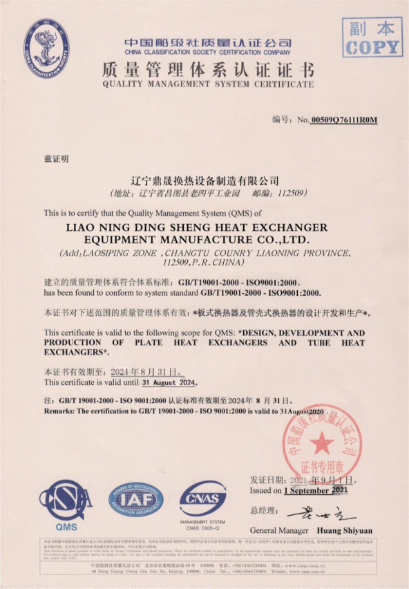 遼寧鼎晟換熱設備制造有限公司創建于1998年,具有豐富的換熱器制造經驗。我公司全部采用微機自動化辦公,產品性能達到國際先進水平質量保證體系完備。可為用戶提供信得過的滿意產品。 我公司主要產品有:板式熱交換器、高直連機組、鈦板換熱器、旋流除污器、螺旋板換熱器、汽水板式換熱器、水水換熱器、空氣散熱器、熱交換器、鈦換熱器、BR、BRB、DRM系列板式換熱器、管殼式換熱器、容積式換熱器、浮動盤管式換熱器、螺旋板式換熱器、換熱機組、空氣冷卻器、散熱器、工業爐換熱器、除污器、過濾器等營銷服務網絡遍布全國各地。